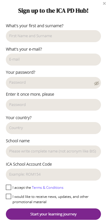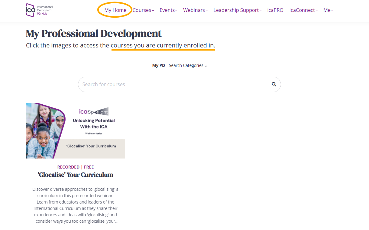 Purpose: The PD Hub is a learning platform where you can access online practical, research-informed professional development. From the PD Hub, you can access the ICA Curriculum Pathway courses for teachers and leaders, International Leadership and Management Programme courses, webinars (both live and recorded), the teachers' community spaces and more.
