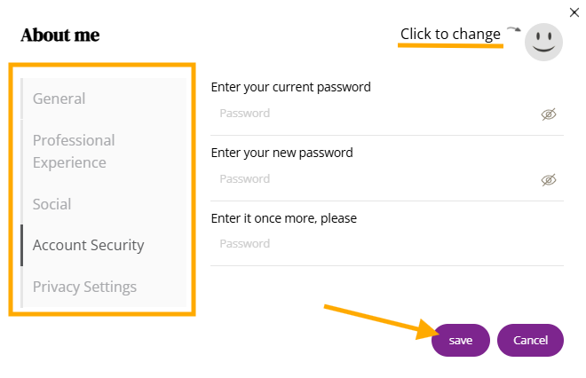 In this area, you can add a photo to personalise your account, change your email address and password, connect your social media accounts to share your certificates and learning success and change your privacy settings.