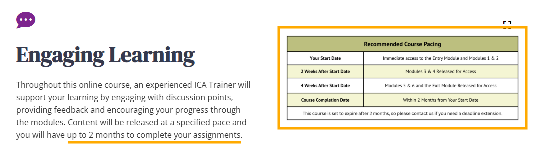 Before purchasing a course, you will get information about the course's pacing and timeline by reading the course homepage.