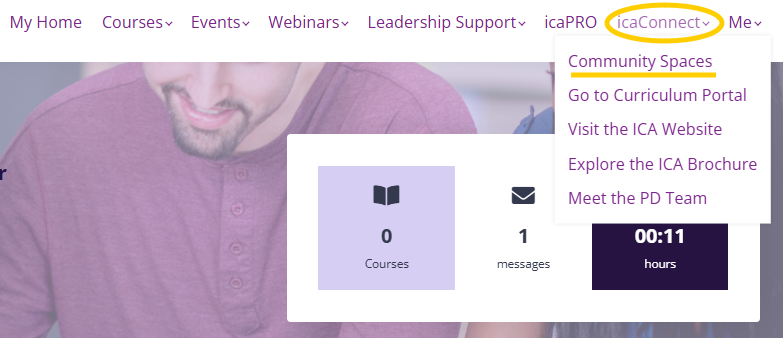 Click 'Community Spaces' in the drop-down menu of the icaConnect tab.